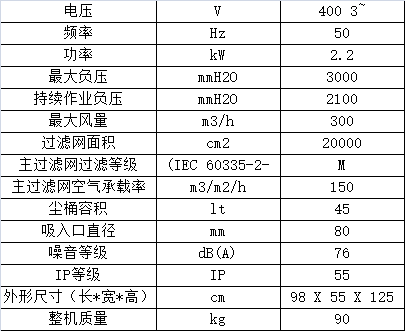 吸尘系统装有1个旁路风机,IP等级55 ;完全免维护,适合24小时连续作业,几乎无噪音;装有热保护开关,电机过热时会立即自动关机,以防发生损坏;装有真空表能持续监测吸尘功效和检查过滤网堵塞情况;装有泄压阀能持续冷却电机,即便在连续长时间作业或过滤网发生意外堵塞时也能保证电机持续冷却。