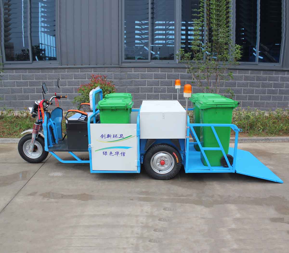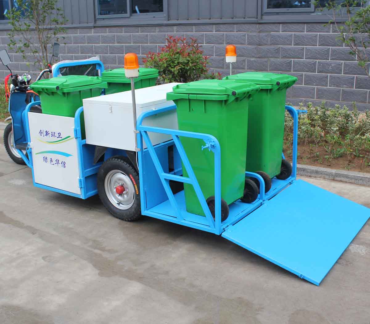 3、经济适用,可同时装载4只240L标准垃圾桶,装卸方便,集垃圾收集、存储、清运于一体,有效提高作业效率;